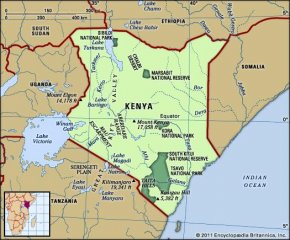 Kenya: Kenyan national parks and reservesEncyclopædia Britannica, Inc.Bisected horizontally by the Equator and vertically by longitude 38° E, Kenya is bordered to the north by South Sudan and Ethiopia, to the east by Somalia and the Indian Ocean, to the south by Tanzania, and to the west by Lake Victoria and Uganda.